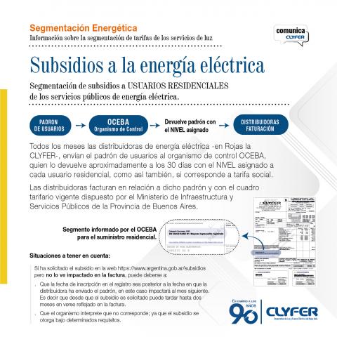Todos los meses las distribuidoras de energía eléctrica –en Rojas la CLYFER-, envían el padrón de usuarios al organismo de control OCEBA, quien lo devuelve aproximadamente a los 30 días con el NIVEL asignado a cada usuario residencial, como así también, si corresponde a tarifa social.